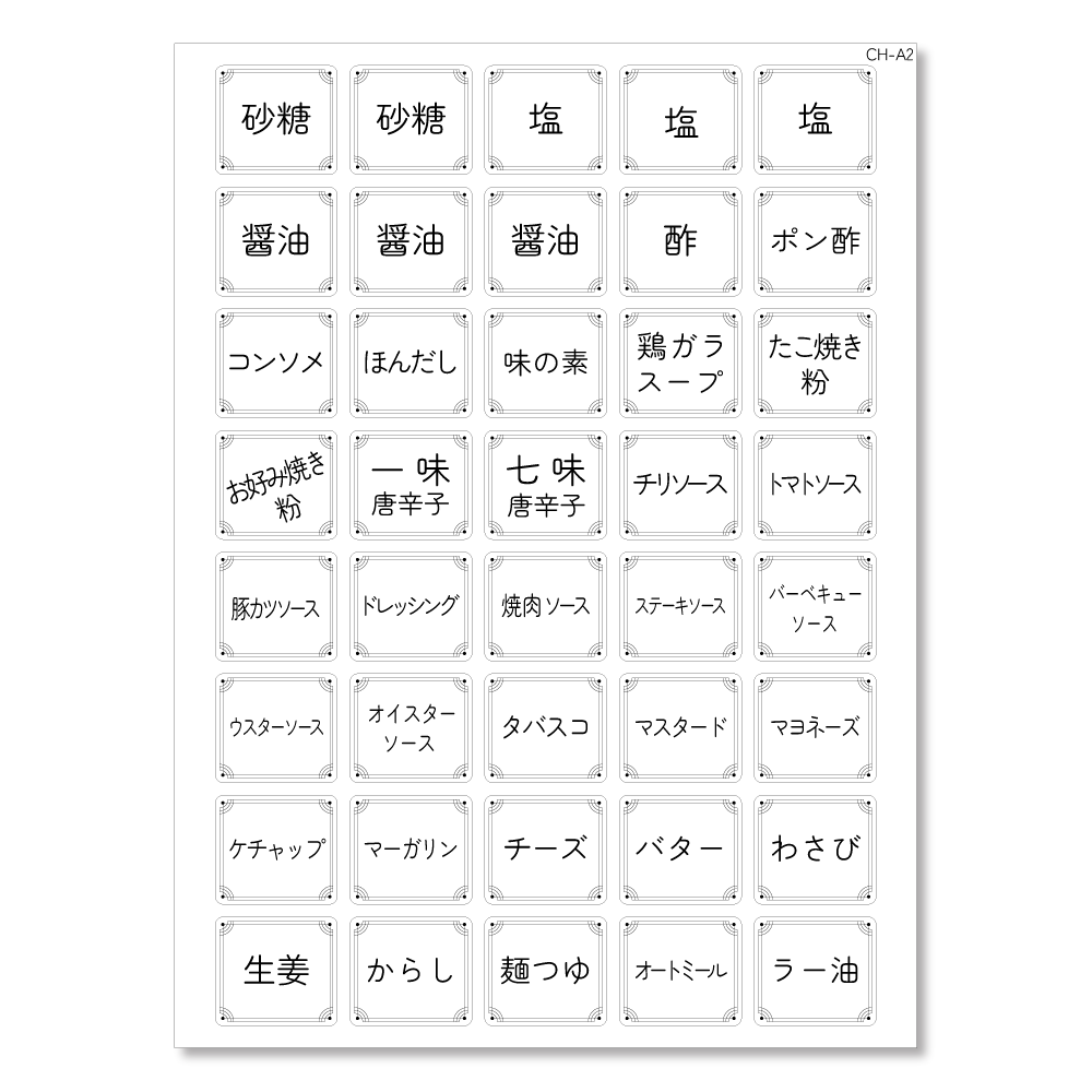 ・砂糖 塩 醤油 酢 ポン酢 コンソメ ほんだし 味の素 鶏がらスープ 一味 七味 チリソース とんかつソース ドレッシング 焼肉ソース バーベキューソース タバスコ マスタード マヨネーズ チーズ バター わさび 生姜 からし めんつゆ ラー油